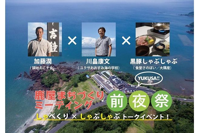 加藤潤(頴娃おこそ会)×川畠康文(ユクサおおすみ海の学校)×黒豚しゃぶしゃぶ( 食堂さのぼい/大隅産)