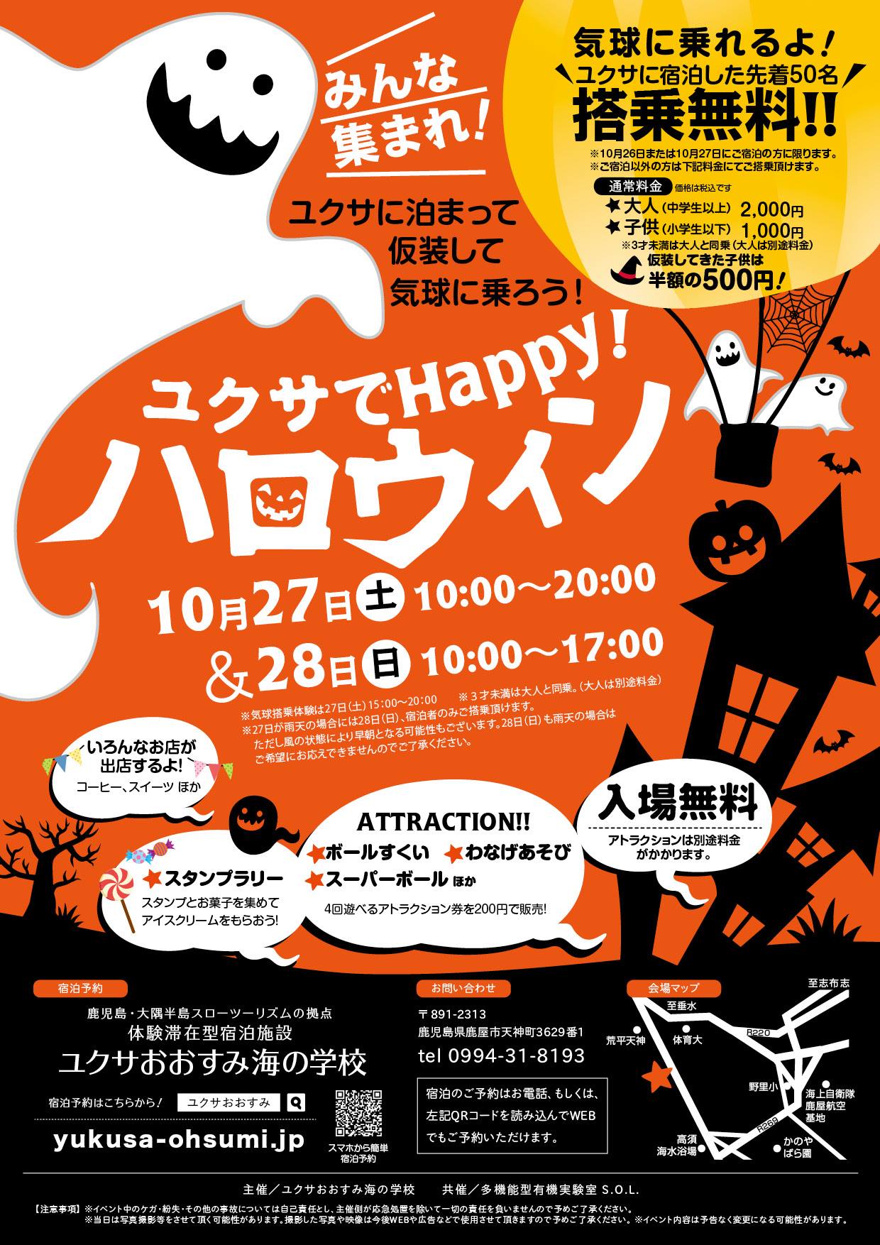 A ハロウィンイベントでは、お菓子がもらえたり、スタンプラリー券やアトラクション券(輪投げなど)を購入しユクサでユクサで“大騒ぎ”できるイベントです!。