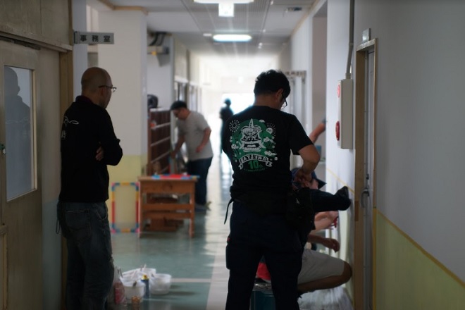 ▼ 廊下のペイント箇所をみんなで確認…..