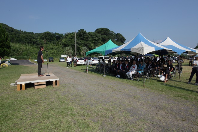また今回の開校パーティー前日に完成した、B.B.Qテラス。こちらは3月3日よりスタートしたクラウドファンディングにて達成し造ることができました。ご支援ありがとうございました。そのクラウドファンディングのお礼を申し上げますと共に、ユクサおおすみ海の学校のスポンサーを紹介を取締役大島が務めました。今回初めてチャレンジしたクラウドファンディング。185名の支援者により総額7,310,000円が集まりました。