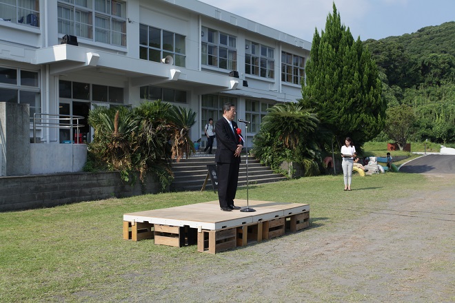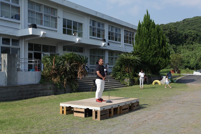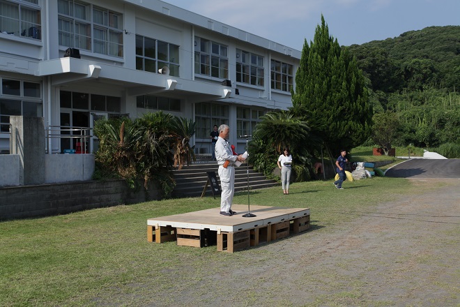 大漁旗パレードを見届け、ユクサおおすみ海の学校(運営会社Katasudde)代表取締役川畠のご挨拶です。