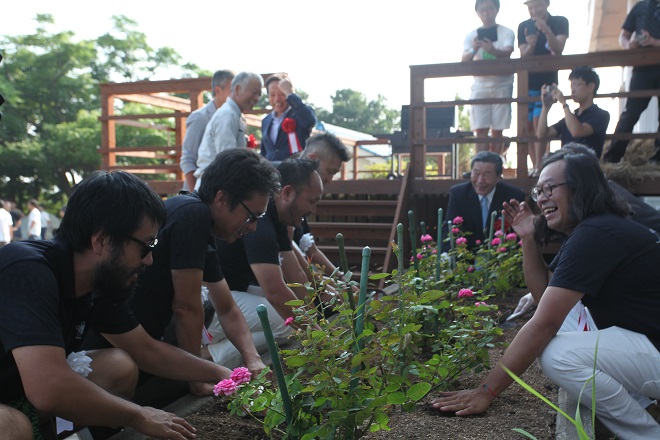 そしてセレモニーも終盤に。開校記念と致しまして、バラの記念樹植栽セレモニーを実施。