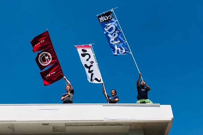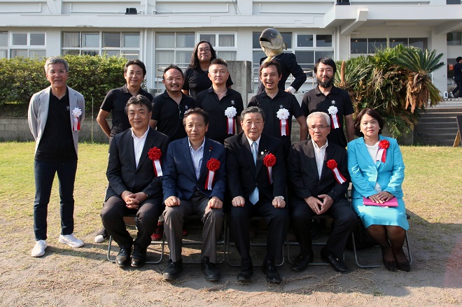 セレモニー開始と共にまずご協力頂いたのは、鹿屋市漁業共同組合による大漁旗パレード。