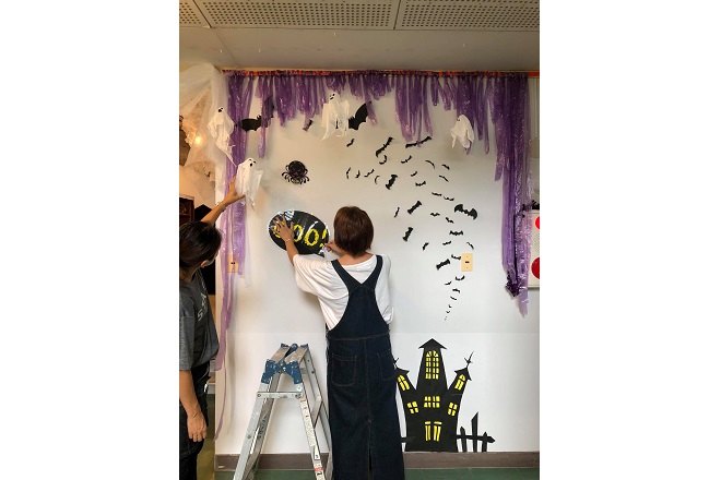まずはハロウィンで学校の色々な所を飾ろうと。