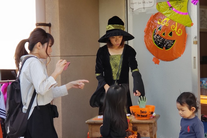 スタッフも仮装をし(スタッフかお客様かわからなくてすみません)、子供たちをお出迎え。