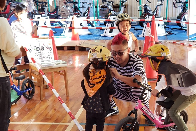 体育館では、6つのゲームと 、鹿児島FunRide による STRIDER 試乗会。