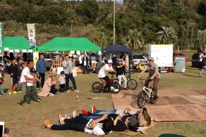 ステージ横では、ユクサのテナントである鹿児島 FunRide による BMX ショー。