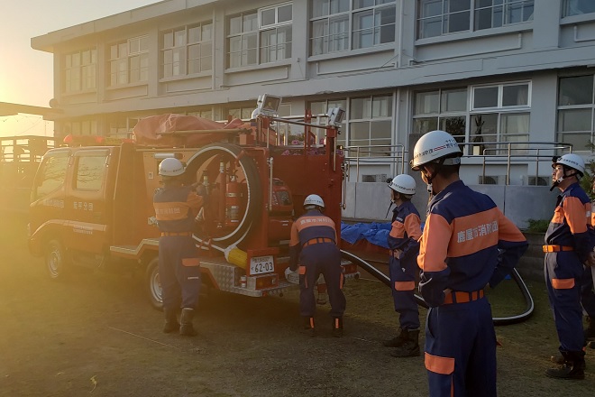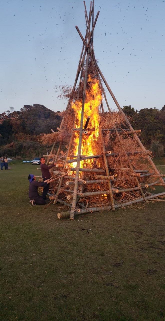 残念ながら夜のキャンプファイヤーは風が強くなってしまったため別日に消防団と昊へと舞い上がりました。