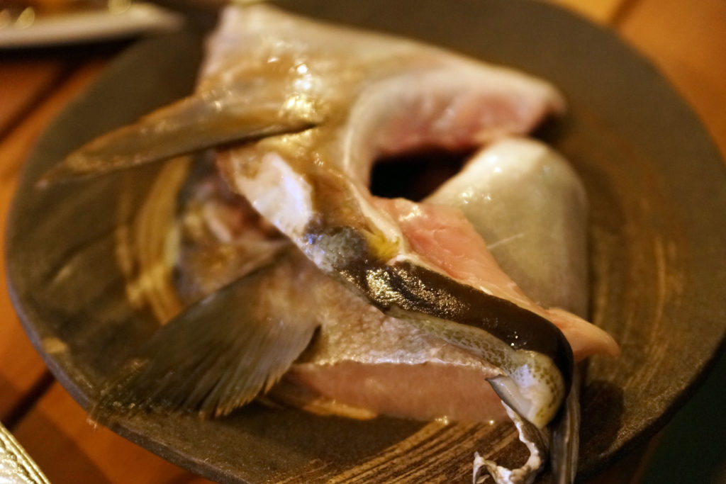 ユクサからすぐそこの生簀で養殖されている「かのやかんぱち」のカマ!海の幸!