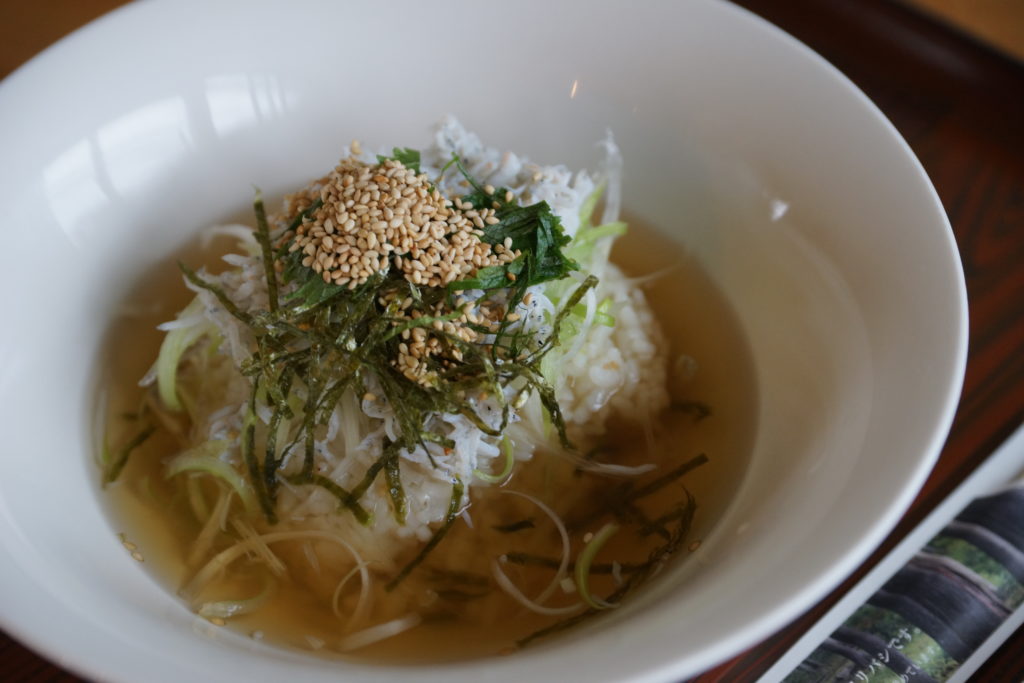 お米は東串良の中島さんのなつほのか。鹿屋さんのネギに志布志のシラス。顎だしで優しい味の絶品出汁。