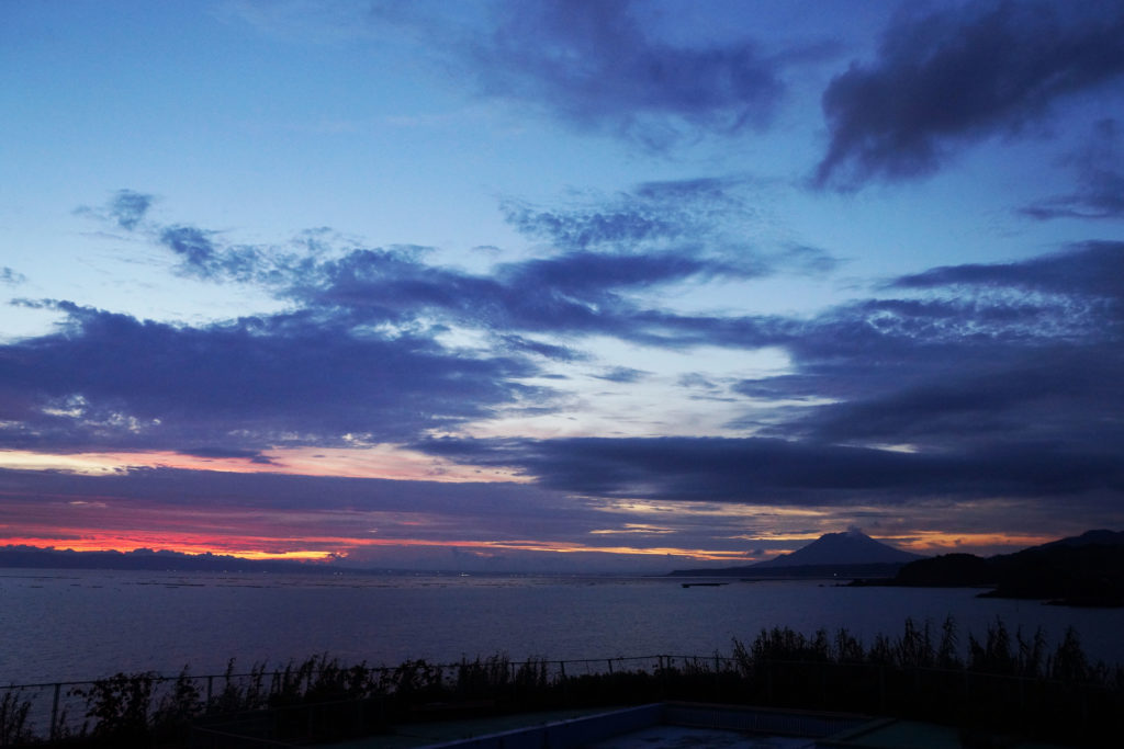 ユクサ自慢の夕日。今日は桜島も綺麗に見えておりました。