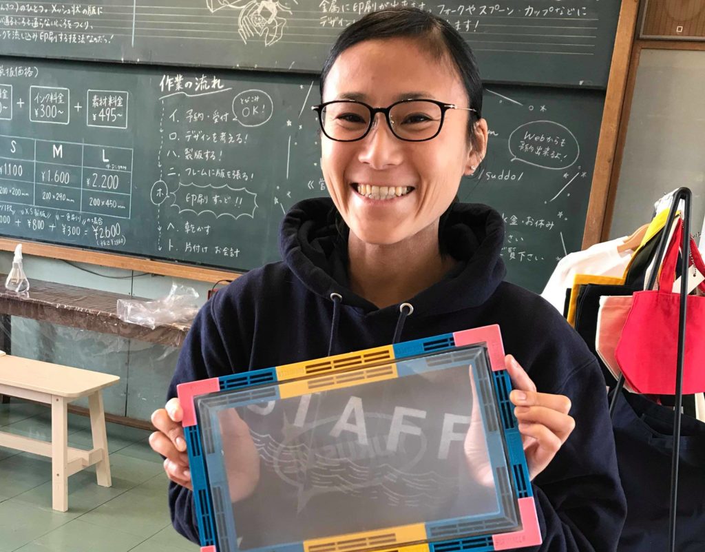 シルクスクリーンの体験ができる工房で、布や紙はもちろん、金属にも印刷ができちゃいます!しかも、当日その場で描いたイラストでも、チームや会社のロゴ(データ)でも大丈夫。